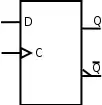 Un verrou D possède une entrée de contrôle, notée H, et une entrée de données, notée D. On retrouve les deux signaux de sortie Q et non Q. Le fonctionnement de cette bascule est le suivant :