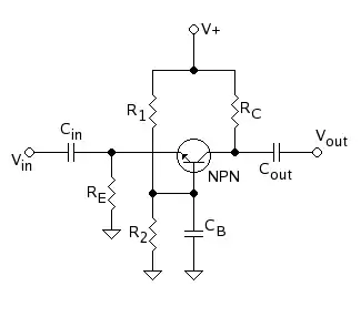 On néglige la résistance R1//R2 car en petits signaux le condensateur CB court-circuite R1//R2. En général, et on a donc qui est donc très faible.