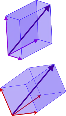 Par exemple, dans le ℝ-espace vectoriel ℝ2, on a la base canonique . Il est facile de vérifier que les vecteurs et forment une base de ℝ2. On peut exprimer ces nouveaux vecteurs par