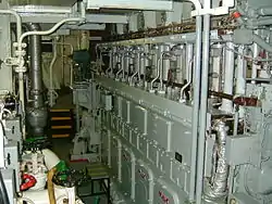Moteur Diesel quatre-temps sur un navire de charge.