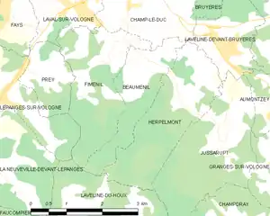 Beauménil se situe à 4 km de Bruyères, à 27 km d'Épinal et à 92 km de Nancy.