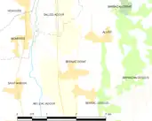 Les communes les plus proches[Note 1] sont[3] : Bernac-Dessus (0,9 km), Arcizac-Adour (1,4 km), Allier (1,6 km), Saint-Martin (1,9 km), Momères (1,9 km), Salles-Adour (2,0 km), Vielle-Adour (2,5 km), Barbazan-Dessus (2,6 km).