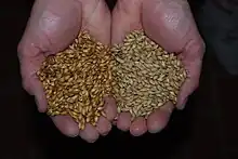 Comparaison de deux types de malt : ambré (à gauche) et blond (à droite)