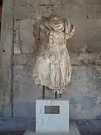 Il y a deux inscriptions, l'une faisant référence à la fondation de la bibliothèque par T. Flavius Pantainos et l'autre à son fonctionnement[4],[5].