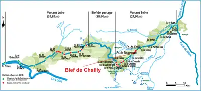 Le bief de Chailly s’étend sur une longueur de 2 530 m entre l’écluse de Rougemont en amont et l’écluse de Chailly en aval[A 10].
