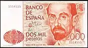 2000 Ptas | 147 × 80 mm | Orange Rouge | Buste de Juan Ramón Jiménez |