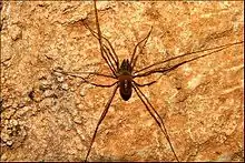 Leptoneta infuscata minos ( Araignées Leptonetidae) (Fig.5),Robertus mazaurici (Araignées Theridiidae)(Fig.10), Meta menardi (Metinae)[19], Sabacon paradoxum (Opiliones) (Fig.6)[20], Nanogona (Polymicrodon) polydesmoides (Diplopodes)(Fig.7), Pyrois effusa (Lépidoptères, Noctuidae)[21],[22] qui s'accouple régulièrement sous terre pour une longue durée (Fig.8).