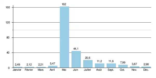 En ce qui concerne la période libre de glaces (de juin à septembre inclus), le débit minimal observé a été de 3,00 m3/s en .
