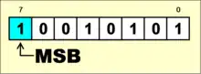 - le nombre 9 s'écrit en binaire 1001. Le MSB (en gras) contribue pour 8 unités (bit de rang 3, 2^3=8) à la valeur totale du nombre ;
