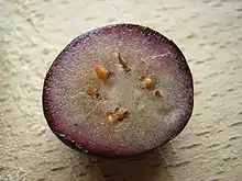 Le bleuet (au Canada[1]) ou bluet[2], est une baie qui pousse sur des arbustes du genre Vaccinium originaires d'Amérique du Nord où on les trouve principalement. Cette baie est proche de celle de la myrtille commune (Vaccinium myrtillus), mais possède toutefois des caractéristiques différentes comme sa coloration, son goût légèrement moins sucré et des propriétés spécifiques[3]. Le bleuet sauvage est de très petite taille tandis que le bleuet cultivé est de plus grande taille.