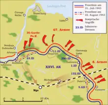 Le les Russes repartent à l'attaque avec 35 bataillons d'infanterie et de chars de la 2e armée de choc depuis le Nord sur un front de 2,5 km.