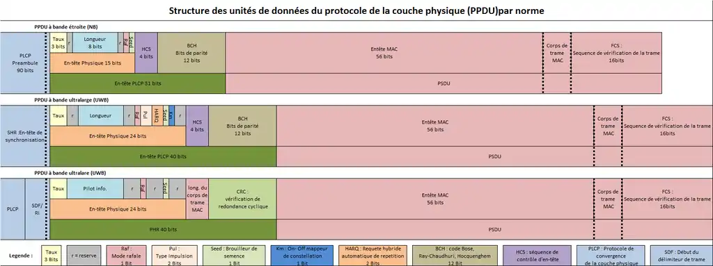 - La couche physique à bande ultralarge (UWB) ;