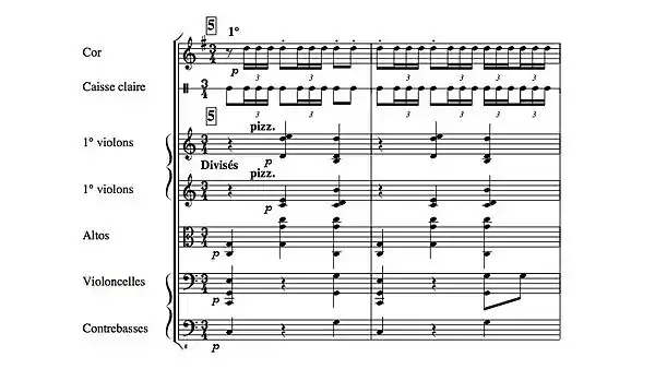 | Premières notes du premier thème du Boléro de Ravel | |