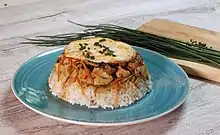Seule la forme de base du plat ne changera pas : un bol de riz mélangé (au-dessus ou en dessous) avec les autres ingrédients. Le bol est ensuite renversé dans l’assiette et surmonté d'un œuf au plat. En restaurant, l'opération est parfois effectuée devant le client.