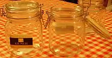 Certains bocaux en verre sont également équipés d'un système d'attache par fil de fer en étrier, mais on parle plus communément de couvercle de bocal. Le couvercle en verre du bocal est pourvu d'une gorge recevant un fil de fer comportant une pliure, en bec d'un côté, en charnière de l'autre. La charnière est reliée à un autre fil qui enserre le col du bocal et comprend une attache à levier articulée. Cette attache est destinée à agripper le bec du couvercle et à le rabattre vers l'orifice.
