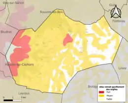 Le retrait-gonflement des sols argileux est susceptible d'engendrer des dommages importants aux bâtiments en cas d’alternance de périodes de sécheresse et de pluie. 81 % de la superficie communale est en aléa moyen ou fort (84,7 % au niveau départemental et 48,5 % au niveau national). Sur les 192 bâtiments dénombrés sur la commune en 2019, 162 sont en aléa moyen ou fort, soit 84 %, à comparer aux 86 % au niveau départemental et 54 % au niveau national. Une cartographie de l'exposition du territoire national au retrait gonflement des sols argileux est disponible sur le site du BRGM[23],[24].
