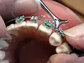 Préparation des dents d'un patient afin d'y appliquer des broches.