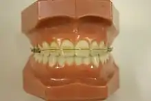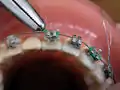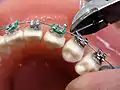 - Broches linguales (en) : Apposées en arrière des dents, elles sont une alternative cosmétique permettant de dissimuler l'appareillage à autrui.