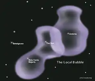 La bulle locale a une forme évoquant un sablier. Le système solaire est situé dans un de ses deux lobes, l'autre lobe est centré au voisinage de l'étoile β Canis Majoris (Murzim).