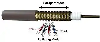 Un câble rayonnant est un câble coaxial dans lequel on a percé des trous à intervalles réguliers. Il peut servir à propager les ondes de la radio FM ou d'un réseau mobile GSM.