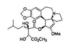 La céphalotaxine (CET) ou omacétaxine est un alcaloïde dérivé de la benzoazépine, initialement isolé à partir de l'arbre Cephalotaxus, une espèce originaire principalement d'Asie[6]. Les propriétés thérapeutiques importantes de la céphalotaxine ont attiré l'attention des chercheurs, notamment dans le domaine de la recherche sur le cancer, en raison de son potentiel antitumoral. De plus, cette molécule sert de précurseur pour la synthèse de plusieurs dérivés qui sont également dotés de propriétés anti-cancéreuses.