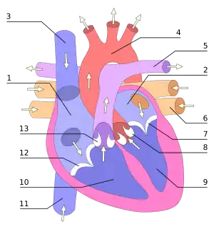 Le cœur humain est un organe musculaire creux qui assure la circulation sanguine en pompant le sang vers les vaisseaux sanguins et les cavités du corps à travers des contractions rythmiques. L'adjectif cardiaque veut dire « qui a un rapport avec le cœur » ; il vient du grec καρδία / kardía, « cœur » [1], et de la racine indo-européenne ḱḗr (« entrailles »).