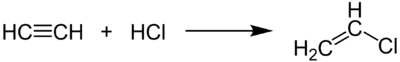 - La réaction de l'acétylène avec l'acide chlorhydrique est une manière de produire du chlorure de vinyle (monomère du polychlorure de vinyle).