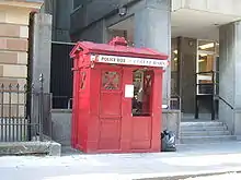 De nos jours, la cabine de police bleue est surtout associée à la série britannique Doctor Who, où la machine à voyager dans le temps du héros, le TARDIS, prend la forme d'une cabine de police britannique des années 1960[3].