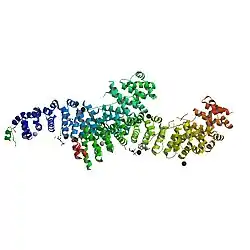 Elle consiste en 5 séquences de cadhérine dans le domaine extracellulaire, un domaine transmembranaire, et un domaine intracellulaire qui lie la beta-caténine. La beta-caténine se lie à l'alpha-caténine qui à son tour se lie aux microfilaments d'actine, ce qui relie l’E-cadhérine au cytosquelette. Dans certains cas, la beta-caténine peut être remplacée par une gamma-caténine.