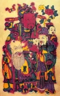 - Zhao Gongming et ses quatre assistants, chacun associé à un point cardinal ; dans ce groupe d’origine taoïste se glisse parfois Shen Wansan (沈萬三), riche commerçant de l’époque Ming ; le groupe s'élargit parfois à huit membres.