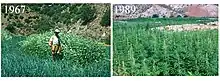 Autorisée à des fins pharmaceutiques sur de petites surfaces dans la haute chaîne du Rif (région de Ketama) sous l’administration espagnole, la culture du cannabis (kif) est en principe interdite sur tout le territoire dès l’indépendance du Maroc ; elle s’est pourtant considérablement élargie dans le Rif, dans les zones permettant une bonne irrigation : dans la région de Chefchaouene d’abord, au pied de la Dorsale Calcaire, puis dans la zone côtière du Rif elle-même[7]. Discrète et à usage familial jusqu’aux années 1970, elle se pratique maintenant ouvertement sur de grandes surfaces et alimente illégalement, grâce notamment au petit port de Jebah, une grande partie du marché européen.