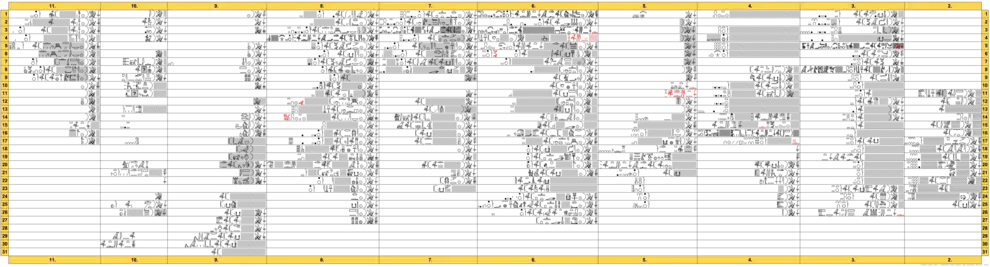 Le papyrus est divisé en onze colonnes, réparties comme suit :