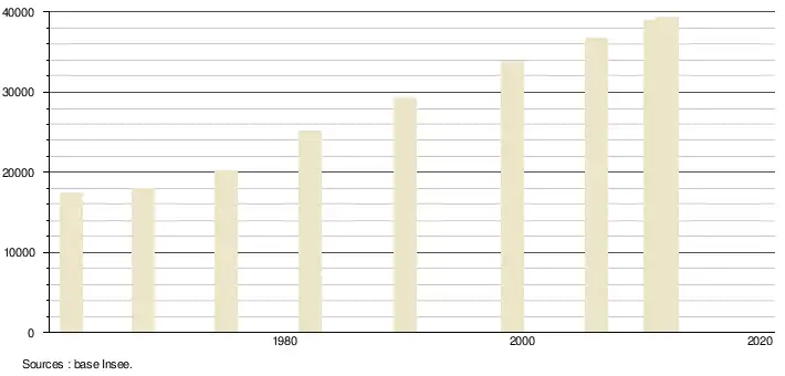 - Population municipale légale en vigueur au 1er janvier 2024, millésimée 2021, définie dans les limites territoriales en vigueur au 1er janvier 2023, date de référence statistique : 1er janvier 2021.