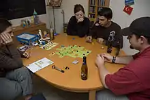 Carcassonne est un jeu de société de Klaus-Jürgen Wrede, édité en Allemagne par Hans im Glück. Le thème est la construction d'un paysage médiéval par la pose de tuiles, incluant des villes fortifiées telles que Carcassonne.