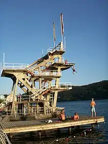 Plongeoir sur la plage de Millstatt.