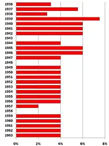 - c'est-à-dire 55 sur 837, calculs de Pi i Sunyer, cités dans Marín i Corbera 2013, p. 278. En calculant la proportion de positions tenues par les traditionalistes, Stanley Payne arrive au même pourcentage (123 sur 1871) (Payne 2011, p. 236). Un chercheur évalue que les carlistes formaient 6 % des gouverneurs civils sur la période 1940-1945 ((es) Julián Sanz Hoya, « Falange y el nombramiento de gobernadores civiles durante el segundo mandato de Arrese (1956-1957) », Studia Historica, vol. 41, , p. 327)