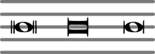 Le bâton de pause peut être utilisé de manière spéciale : placé au centre d'une mesure, et surmonté d'un nombre, il indique un nombre égal de mesures en silence consécutives à compter.