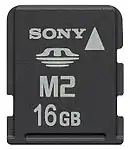 - Memory Stick Pro Micro ou M2, qui reprennent le standard Memory Stick Pro, mais au format 15 mm × 12,5 mm × 1,2 mm. Ces cartes offrent des capacités de 64, 128, 256, 512 Mo, 1, 2, 4, 8,16 et 32 Go. Ces cartes sont lisibles dans tout lecteur compatible avec la norme Memory Stick Pro, via l'usage d'un adaptateur. Ces cartes sont utilisées en mémoire de stockage interne des téléphones Sony Ericsson et Consoles PlayStation Portable Go.