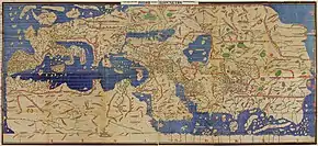 À la fin du XIIIe siècle, les portulans apparaissent : ils représentent les ports de commerce, les amers (objets fixes et visibles servant de point de repère en mer ou sur la côte), les îles et les abris. Ces cartes, ancêtres des cartes marines, comportaient un réseau de lignes correspondant aux divisions de la rose des vents qui permettaient aux navigateurs d’évaluer les caps à la boussole. Issues et destinées à la navigation[4], les portulans ne détaillent pas l'intérieur des terres.