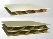 Le carton ondulé est un matériau léger et rigide constitué par une ou plusieurs feuilles de papier cannelé collées sur une ou entre plusieurs feuilles cartonnées[1].