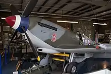 Sur un Supermarine Spitfire, casserole d'hélice peinte en bleue, blanc et rouge.