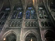 Dès 1221, les chanoines s'installent dans leurs stalles, ce qui indique que l'érection du chevet est achevé. Tout le gros œuvre, hormis les porches, les voûtes et les pignons du transept, est achevé en une trentaine d'années (1194-1225)[24]. En 1240, les vitraux sont déjà réalisés et la consécration solennelle a lieu le [25].
