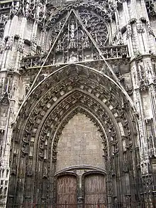 | Fin du IXe siècle | La cathédrale est endommagée lors des invasions normandes. | 1507 | La fabrique fait appel à Martin Chambiges afin de construire la façade. |