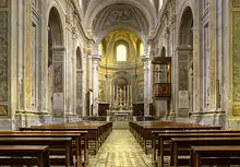 Les chapelles latérales rassemblent surtout des tableaux des XVIIe et XVIIIe siècles. Dans la première chapelle de gauche, l'icône du Très Saint Sauveur bénissant est d'une grande valeur historique et artistique. Cette peinture sur bois date du début du XIIIe siècle et représente le Sauveur bénissant assis sur un trône de pierres précieuses et de perles, tenant un livre de la main gauche, selon les canons de l'iconographie byzantine. Elle est admirable également par les couleurs utilisées: le rouge pour le coussin, le bleu foncé pour la tunique, le bleu azur pour le drap qui couvre le dossier et l'or pour le fond. La troisième chapelle de gauche conserve un tableau de Jacopo Zucchi, élève de Vasari.