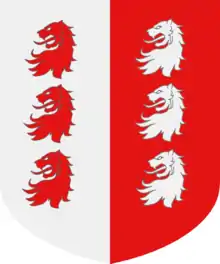 Les armes des Cavazza sont un écu parti d'argent et de gueules, les deux partitions chargées de trois têtes de Lions arrachées et posées en pal de l'un en l'autre.