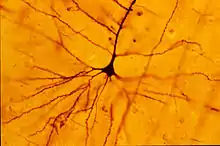 Neurone pyramidal néocortical humain, tel qu'une cellule de Betz, coloré par la technique de Golgi.