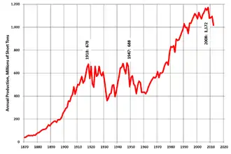 En 2006 aux États-Unis, le rythme annuel de production de sous-produits de combustion du charbon (cendres volantes + mâchefers) était d’environ 125 MT/an (dont environ 43 % avaient des applications commerciales) [11].