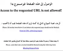 L'Arabie saoudite contrôle tout le trafic Internet en provenance de l'extérieur du pays. Un filtrage d'Internet y est réalisé, avec un logiciel de Secure Computing[28]. Depuis , la Commission des technologies de l'information et des communications (CITC) s'occupe de la structure et du filtrage DNS en Arabie saoudite. En outre, un certain nombre de sites sont bloqués, selon deux listes maintenues à jour par l'Unité des services Internet (ISU)[29]: une contenant des sites «immoraux» (principalement pornographiques ou de soutien des droits LGBT) et des sites faisant la promotion de l'idéologie chiite, les autres basés sur les instructions d'un comité de sécurité dirigé par le ministère de l'Information (y compris les sites critiques du gouvernement saoudien). Une caractéristique intéressante de ce système est que les citoyens sont encouragés à signaler activement les sites «immoraux» à bloquer, principalement pour adultes et pornographiques, en utilisant un formulaire Web disponible sur le site Web du gouvernement.
