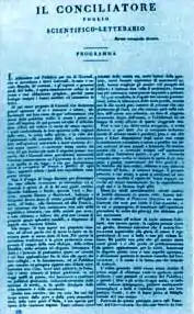 - En 1816, à l'initiative des Autrichiens, la Biblioteca Italiana (it), mensuel littéraire, est fondé à Milan. En contrepoids à ce dernier, la revue de statistiques et littéraire Il Conciliatore, proche des idées romantiques de Madame de Staël, sort jusqu'en 1819 où elle est contrainte à la fermeture.