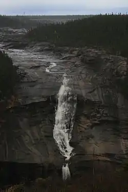 Le dénivelé naturel total du fleuve Churchill et de sa branche mère la rivière Ashuanipi, du lac Ashuanipi au lac Melville, est de 529 m. À titre de comparaison, le dénivelé du cours d'eau à 30 km en amont jusqu'à ce qu'elle pénètre dans la centrale chute de plus de 300 m.